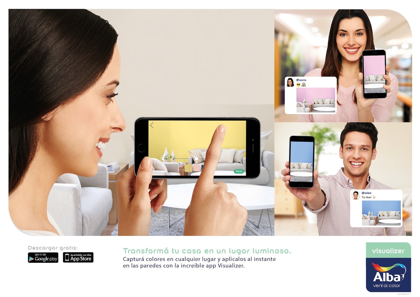 Queremos que elijas el color que más te guste por eso con Alba Visualizer podés probar los colores de una forma divertida y sencilla, Descargando la App gratuita y simulando los colores directamente sobre la pared.